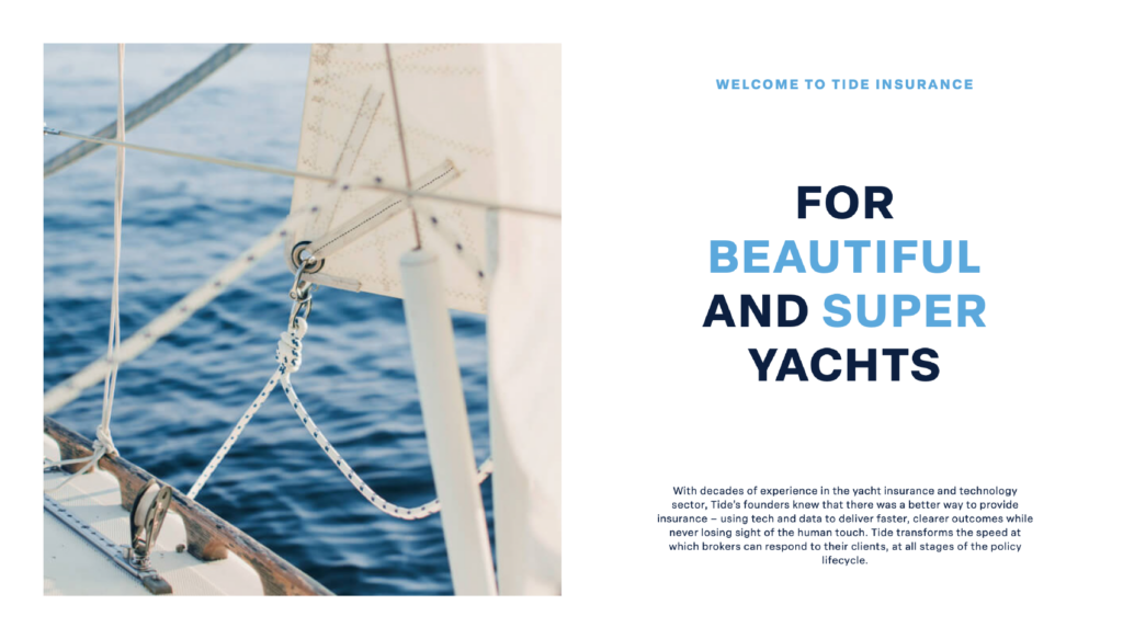 Formed in 2024, with a modern, tech-driven vision, Tide Insurance are redefining what the yachting world can expect from an MGA. Quotes flow into the hands of brokers in minutes, not days. Knowledge flows to clients via transparent policies. Outcomes flow smoothly thanks to best-in-class claims handling and adjustment. Everything flows with Tide.